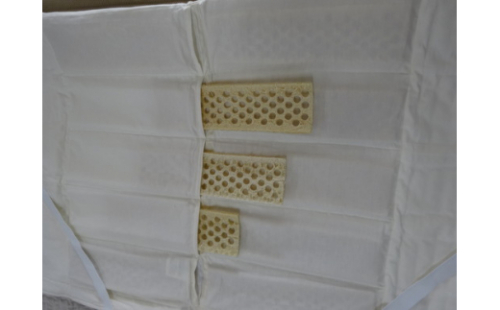 畑で採れた天然素材の「へちま」100%です。ヘチマは多孔質立体構造ですから、内部に空気をいっぱい含んでいます。そのため 軽くて、汗を吸い、放水性に優れ、速乾性もあります。しかも弾力性がある為、寝具の中素材に最適です。涼しい理由は、ラファス・シート(ワタセの特許)です。