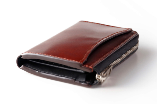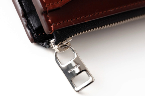 断面のコバ磨きは革本体とはまた違う輝きで製品を彩る輪郭に。