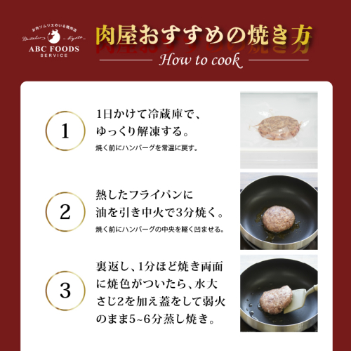 ハンバーグを前日に冷蔵庫内に入れ完全に解凍してから焼いてお召し上がりください。