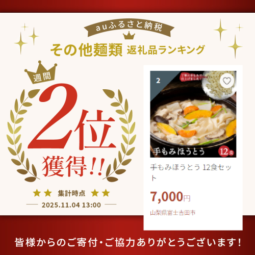 ~山梨の郷土料理「ほうとう」を丁寧に手もみで仕上げました。~