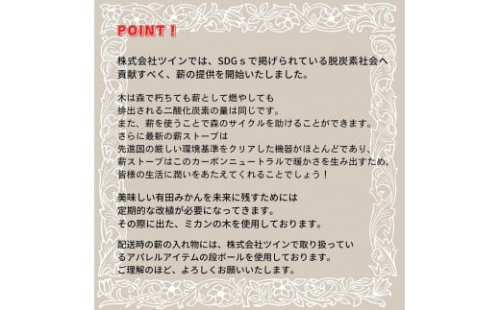 今まで廃棄処分されていた有田みかんの木を薪として再利用した循環型の薪です。