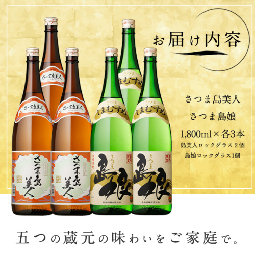 - ロックグラス入り 島美人 3本・ 島娘 3本セット(計6本) さつま島美人 芋焼酎 焼酎セット 本格焼酎 焼酎 芋 父の日 グラス 一升瓶 nagashima-7250
