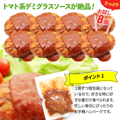 《定期便4ヶ月》昔懐かしいトマト系デミグラスソースハンバーグ (160g×8個)×4回 惣菜 おかず 肉 洋食 お試し 簡単 湯煎 湯せん レンチン 個包装