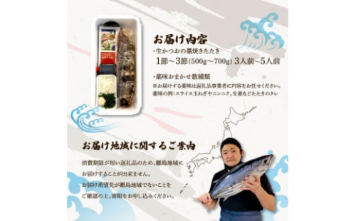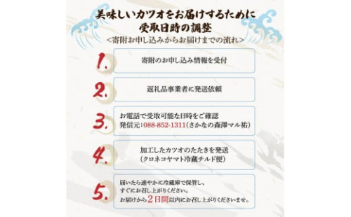 ・冷蔵便の商品ですので良質なカツオが入った時点で出荷します。そのため、台風時や年末年始は仕入れができないためご希望に添えないことがございます。ご了承ください。