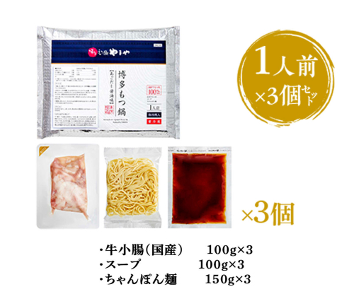 一人分のもつとスープちゃんぽん麺のセットです。もつは、100gで少ないかな?と思いましたが、クセのない脂たっぷりのもつなので、丁度良い量です。野菜を美味しくたくさん食べられます。スープは濃縮なので、野菜の量が多い時は分量の水を減らして最後に味をみて、調整できるのも便利です。ちゃんぽん麺も太面でコシがあり大変美味しかったです。リピート確定です!