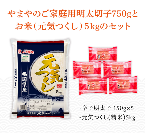 - やまやのご家庭用明太切子750gとお米(元気つくし)5kgのセット AZ051