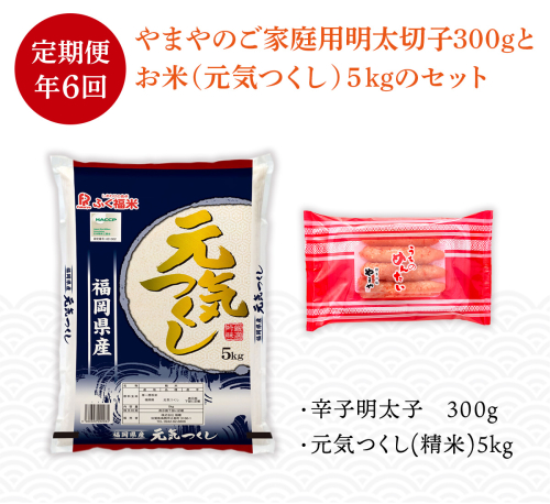 - 【定期便6回/年】やまやのご家庭用明太切子300gとお米(元気つくし)5kgのセット AZ058