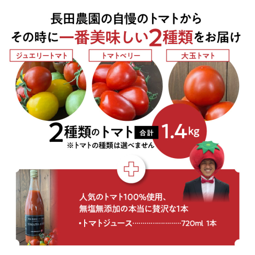 - 【福箱★2026】 トマトでハッピー!!長田農園の厳選トマト約1.4kg&トマトジュース720ml×1本 福箱 H004-176