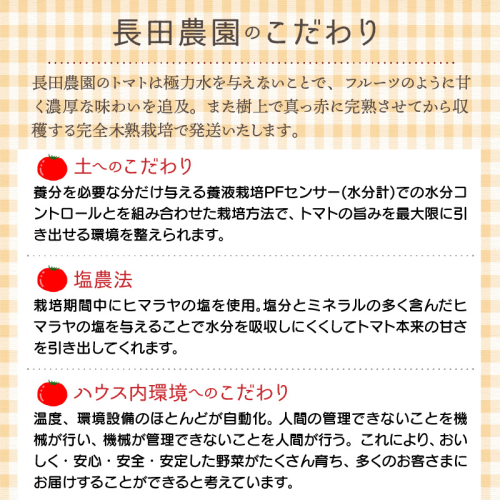 ありがたいことに大変多くの方にお選びいただいており、長らくお待たせすることもございますが、美味しいトマトを皆様へお届けするために日々奮闘しておりますので、どうぞご理解のほどお願いします。