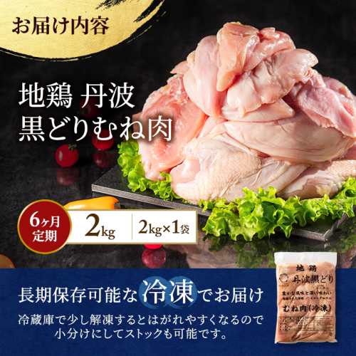 6ヶ月 定期便 地鶏 丹波 黒どり ムネ 2kg 鶏肉 冷凍 丹波山本 高タンパク低カロリー たんぱく質 ボリューム 筋トレ チキン 蒸し鶏