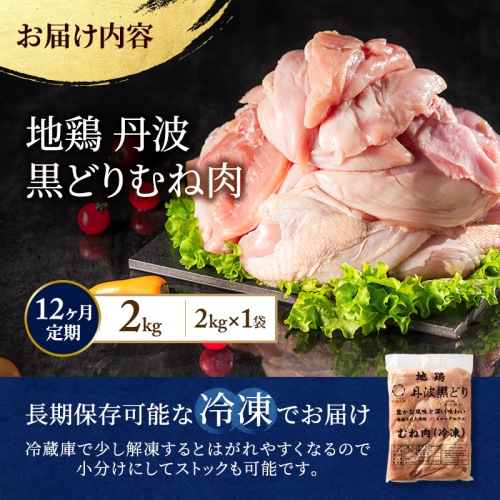 12ヶ月 定期便 地鶏 丹波 黒どり ムネ 2kg 鶏肉 冷凍 丹波山本 高タンパク低カロリー たんぱく質 ボリューム 筋トレ チキン 蒸し鶏