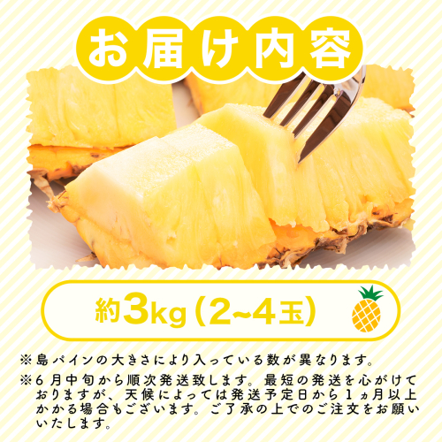2026年 先行予約 島パイン (ハワイ種) 約3kg 2〜4玉 パイナップルの王道 西表島産 パイン 果物 フルーツ 026-a015_2026