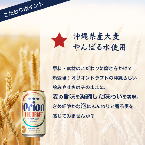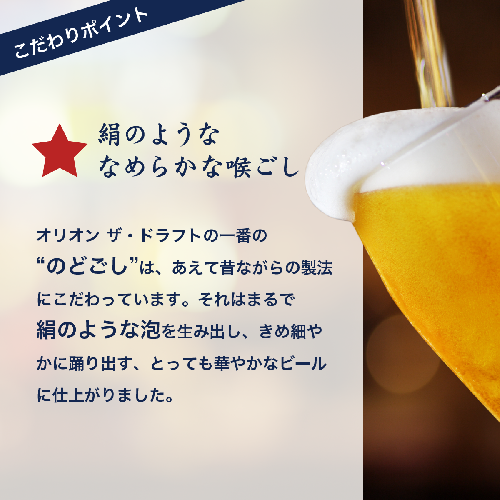 沖縄県民に愛され続けるオリオンドラフトが、原料・製法へのこだわりに磨きをかけて新登場。オリオンドラフトの沖縄らしい飲みやすさはそのままに、麦の旨味を凝縮した味わいを実現。オリオンドラフトを超えた『オリオン ザ・ドラフト』。