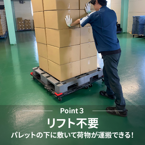 【説明】 1.縦横連結機能とスタッキング機能を備えた平台車 2.4枚で、パレットサイズ(120×120cm)に連結可能 3.荷物の大きさに合わせ、縦横へ自由に連結可能 4.走行音が静かなゴムキャスター採用しているので、引っ越しや模様替えで活躍 5.滑り止め(2箇所) 6.耐荷重は150kg 【配送不可地域】 北海道、沖縄、離島 【保存方法】 常温 【地場産品基準】 3号:区域内で、樹脂板の成形から組立までの工程を行うことにより、約60.0%の付加価値が生じているもの。