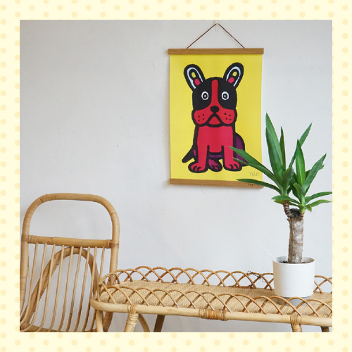 Tapirok(タピロク)の商品でお馴染みの、奥山優さんの絵が欲しいという声にお応えして「トラ猫くんのお月見散歩」「Cool French Bulldog」「王様ライオン」の3作品でポスターを作りました。