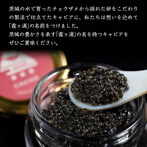 茨城の水で育ったチョウザメから採れた卵をこだわりの製法で仕立てたキャビアに、私たちは想いを込めて「霞ヶ浦」の名前をつけました。茨城の水、そして豊かさを表す「霞ヶ浦」の名を持つキャビアをぜひご賞味ください。