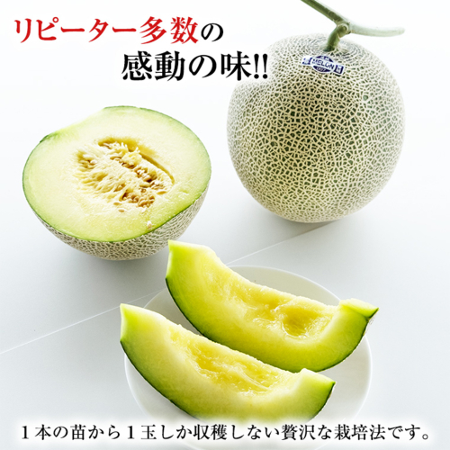 季節限定、市場に一切出荷しない甘さ満点の完熟アールスメロン。貴重な特大サイズです!1本の苗から1玉しか収穫しない贅沢な栽培法で、直営農場の豊かな大地といっぱいのお日様を浴びたアールスメロンは、グレート感あふれる大きさ、強い甘味、美しい果肉が特徴です。この道40年のメロン職人たちが手間暇を惜しまず、愛情を込めて実らせた逸品です。リピーター多数の感動の味を是非ご賞味ください。