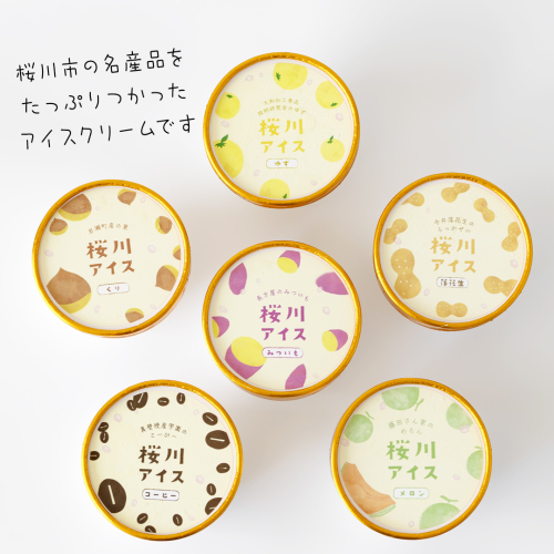 【生産者支援】桜川アイス 6種 6個 セット 数量限定 食べ比べ 90ml×6種類 桜川市のこだわり素材を使用 アイス あいす デザート スイーツ 産地限定 おやつ カップ フレーバー メロン ゆず 蜜芋 コーヒー 栗 茨城県 [SC040sa]