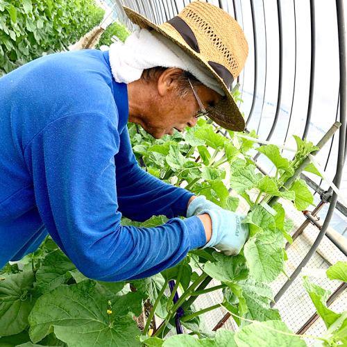 そのため一番暑い7月、8月の作業がメインとなります。ハウス栽培なので、ハウス内は50度近い温度になります。