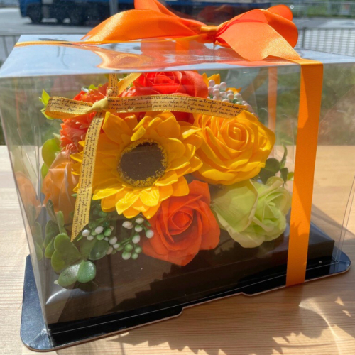 シャボンフラワーとは、生花やプリザーブドフラワーに代わる第3のフラワーギフトです。ほのかな香りとボリューム感たっぷりで華やか、石けんで出来ているため、水やり・お手入れは不要で、長期間枯れることなくお楽しみいただけます。