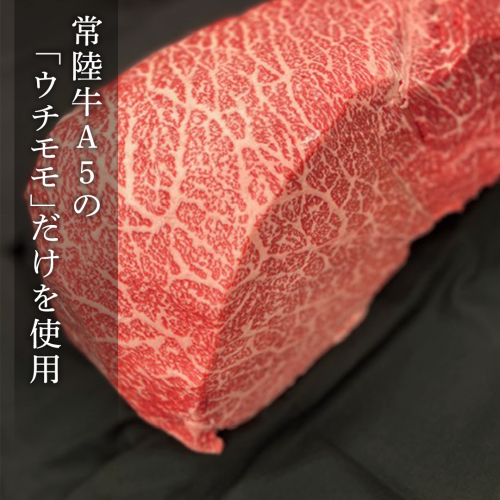 " 安心・安全 " 素材からこだわり、天皇賞獲得経験のあるドリームファーム佐藤牧場の旨味の濃い常陸牛A5ランクのウチモモだけを使用しています。