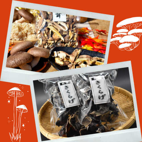 内容は、きのこの水煮、混ぜご飯の素、うどんそばの具、乾燥キクラゲ、乾燥椎茸の5点セットです。