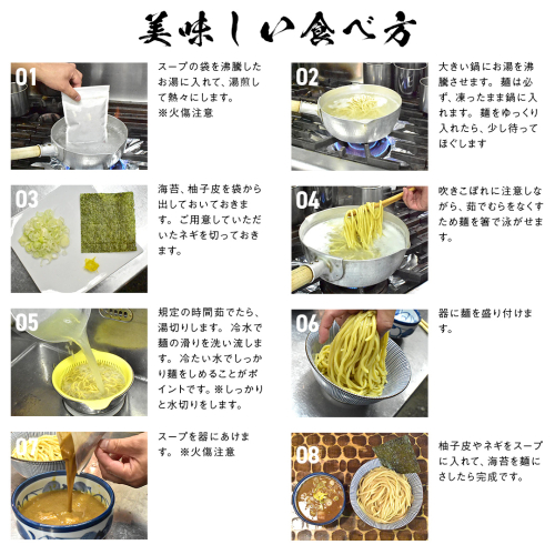 香りとこしのきいた極太麺、節のきいた濃厚な魚介豚骨のスープ。茨城で一番食べられているつけ麺をぜひご家庭でご堪能ください。