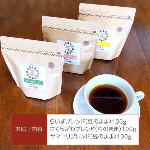 らいず珈琲 オリジナルブレンド 3種(各100g)【豆】  コーヒー 珈琲 豆 オリジナル ブレンド セット 飲み比べ  [CK002sa] 1364726 - 茨城県桜川市