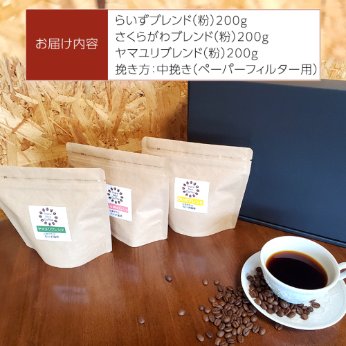 らいず珈琲 オリジナルブレンド 3種(各200g)【粉】 コーヒー 珈琲 粉 オリジナル ブレンド セット 飲み比べ  [CK005sa] 1364729 - 茨城県桜川市