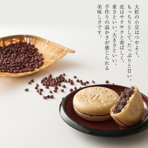 北海道産の「エリモ小豆」はつやよく、もっちりとして、たっぷりと甘い。皮はサクサクと香ばしく、重さといい、大きさといい、手作りの温かさが感じられる美味しさです。