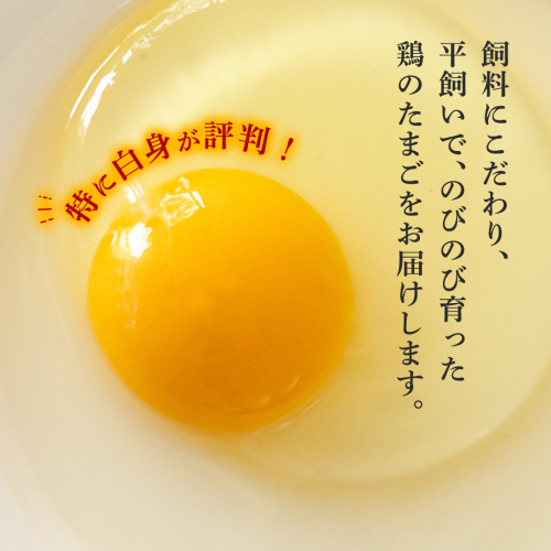 飼料にこだわり、平飼いでのびのび育ったたまごは濃厚で、特に白身が美味しいと評判です。