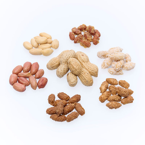 から付落花生、味付落花生、バタピー、黒糖ピーナッツ、コーヒーピーナッツ、みそピーナッツ、落花糖ピーナッツ