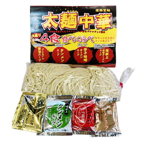 - (太麺セット) 麺:150g×4食 ラーメンスープ:4種各1個(プレミアム醤油・タンメン・辛子味噌・味献上味噌)