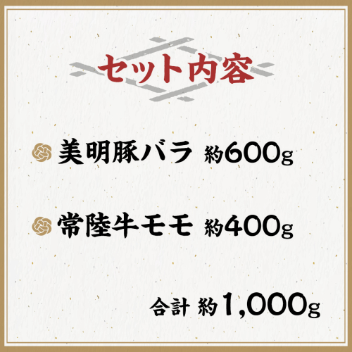 - 美明豚 × 常陸牛 スライス 約1kg セットA 【茨城県共通返礼品/行方市】 ブランド豚 しゃぶしゃぶ SPF 豚肉 バラ モモ [DS002sa]