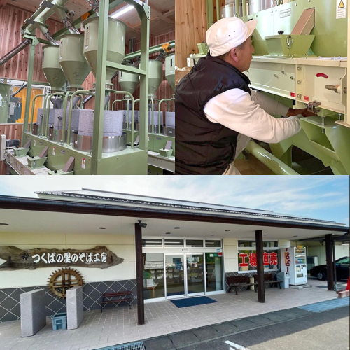 地元桜川市真壁町で採れた御影石を使用した特大石臼を使用し、地元農家さんより仕入れた原料を毎分16回転で丹念に挽いた蕎麦粉は多くのお客様にご評価いただいております。原料から石臼まで全て地元桜川にこだわったものづくりをしております。