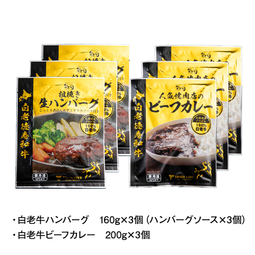 • 粗挽き生ハンバーグ&ビーフカレー 白老牛 北海道