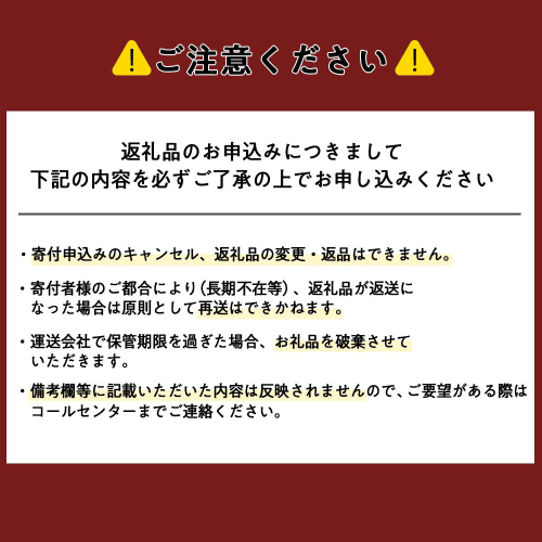 提供元の都合などにより、掲載中に予告なく返礼品の仕様(規格、容量、パッケージ、原材料など)が変更される場合がございます。お届けした返礼品のパッケージやラベルに記載されている注意書きなどをご確認ください。
