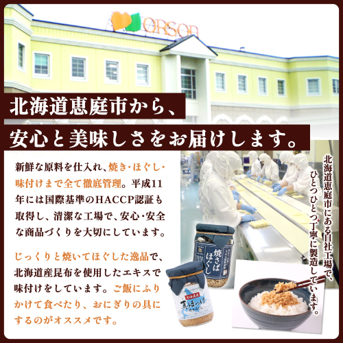 【定期便:全11回】 オルソン 真ほっけほぐし 焼さばほぐし 各1個 セット オンライン 申請 ふるさと納税 北海道 恵庭 真ほっけ ほっけ ホッケ 焼さば さば サバ ほぐし身 おむすび おにぎり ご飯のお供 定期便 11ヶ月 恵庭市