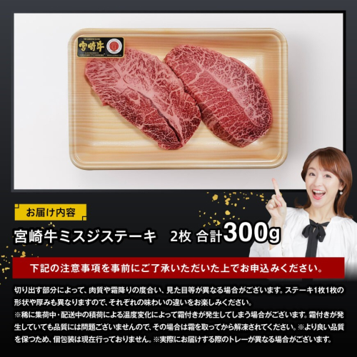 - 宮崎牛ミスジステーキ2枚 合計300g【 肉 牛肉 国産 黒毛和牛 宮崎牛 ステーキ ミスジ 宮崎県 川南町 D11409 】