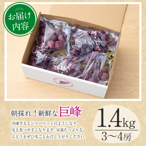 <先行予約受付中!2026年8月中旬以降順次発送予定>鹿児島県産 巨峰(約1.4kg・3~4房) 国産 ぶどう ブドウ 葡萄 果物 フルーツ セット 期間限定 数量限定【落合ぶどう園】akn025-01 137017 - 鹿児島県阿久根市