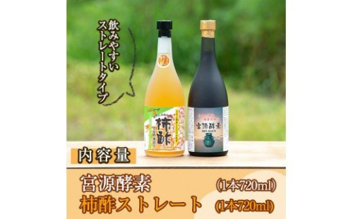 無添加・自然発酵!柿酢ストレートと酵素のセット(720ml×各1本)国産 カキ 柿 健康飲料 酢 ミネラル アミノ酸 ビタミン【柿健堂】akn017-06 137044 - 鹿児島県阿久根市