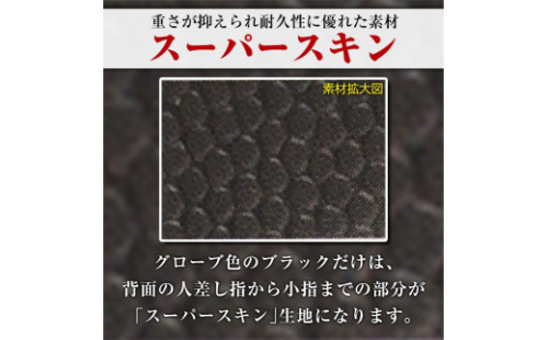 ・グローブ色のブラックだけは、背面の人差し指から小指までの部分が「スーパースキン」生地になります。
