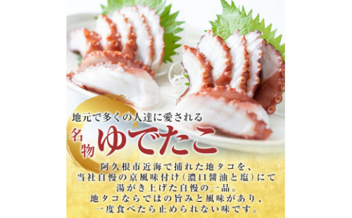 鹿児島県阿久根市近海で獲れた地タコを、当社自慢の味付けにて湯がき上げた自慢の一品、地タコならではの旨味と風味があり、一度食べたら、止められない味です。