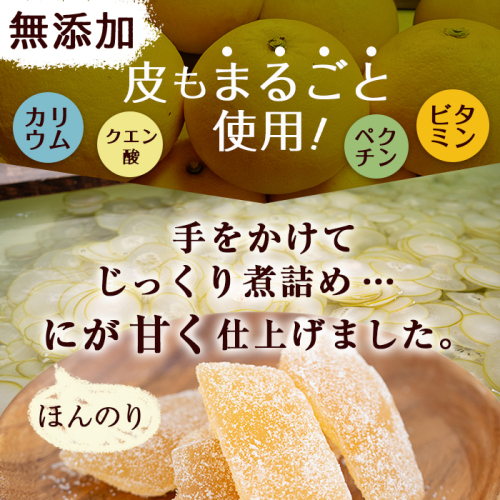 ・さわーぽめろ漬…2月頃に収穫したサワーポメロの皮を糖蜜で煮込み、スティック状にしたフルーツ菓子です。