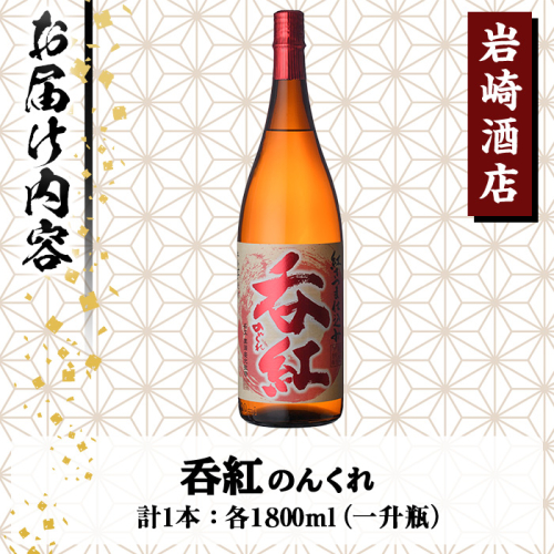 オリジナル芋焼酎!岩崎酒店限定「呑紅」(1800ml×1本) 国産 焼酎 いも焼酎 お酒 アルコール 水割り お湯割り ロック【岩崎酒店】akn019-08 137119 - 鹿児島県阿久根市