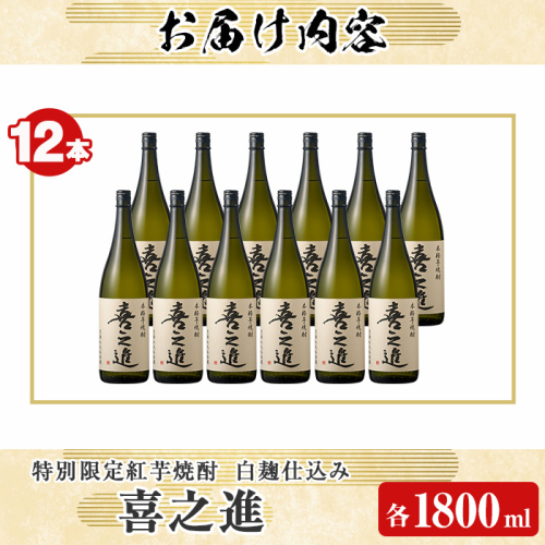 鹿児島酒造の特別限定紅芋焼酎「喜之進」(各1800ml×計12本・1回) 国産 芋焼酎 白麹 芋焼酎 いも焼酎 紅さつま 一升瓶 お酒 アルコール【齊藤商店】akn020-39
