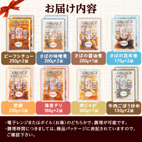 簡単調理!惣菜レトルトCコース(8種・14袋)国産 レトルト 簡単調理 お手軽 惣菜 おかず おつまみ【ABCパレス】akn039-14 137145 - 鹿児島県阿久根市
