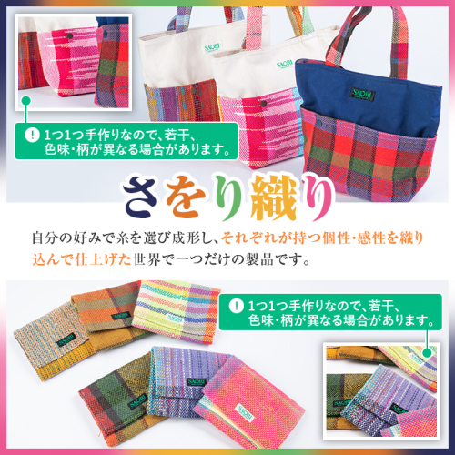 • さをり織り外ポケットバッグ&ティッシュケース(計2つ)国産 トートバッグ 小物入れ 工芸品 手提げ【デイハウスふたば脇本】akn041-05