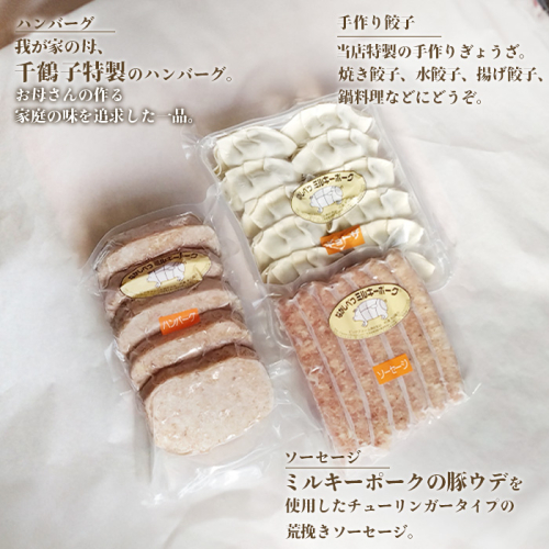 - ミルキーポークのハンバーグとバラエティセット(ハンバーグ・餃子・ソーセージ 計24個)【15008】