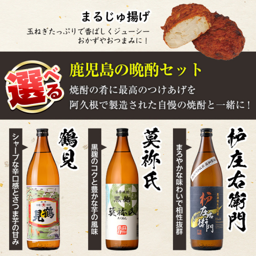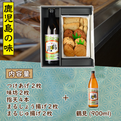 さつま揚げ5種(合計12枚)と地元芋焼酎「鶴見」(1本) さつまあげ つきあげ つけ揚げ 焼酎 芋焼酎 セット だいやめセット【まるじゅ本舗】akn002-05 137182 - 鹿児島県阿久根市